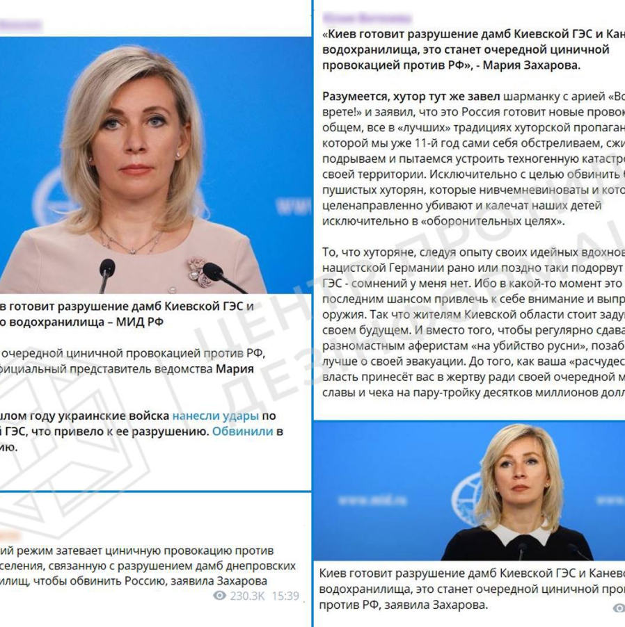 Також спеціалісти додають, що попри те, що заява захарової має вигляд спроби забезпечити росії алібі перед терактом, у рф немає засобів та можливостей для знищення дамб біля Києва та Канева.