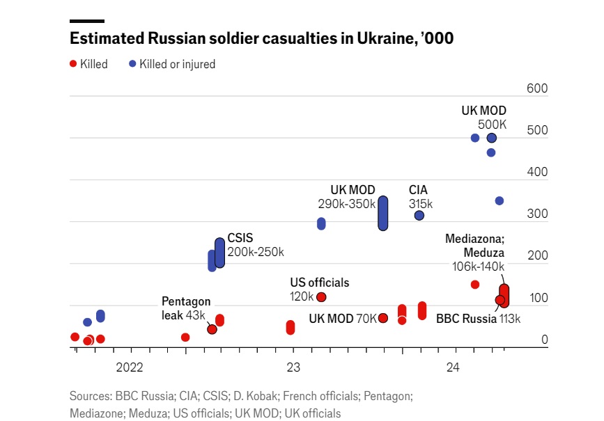 Статистика свідчить, що втрати росії в цій війні перевищують сумарні втрати у всіх її конфліктах після Другої світової війни. Водночас, західні аналітики вважають, що Москва здатна продовжувати набір нових солдатів у кількості 25 000 - 30 000 на місяць.